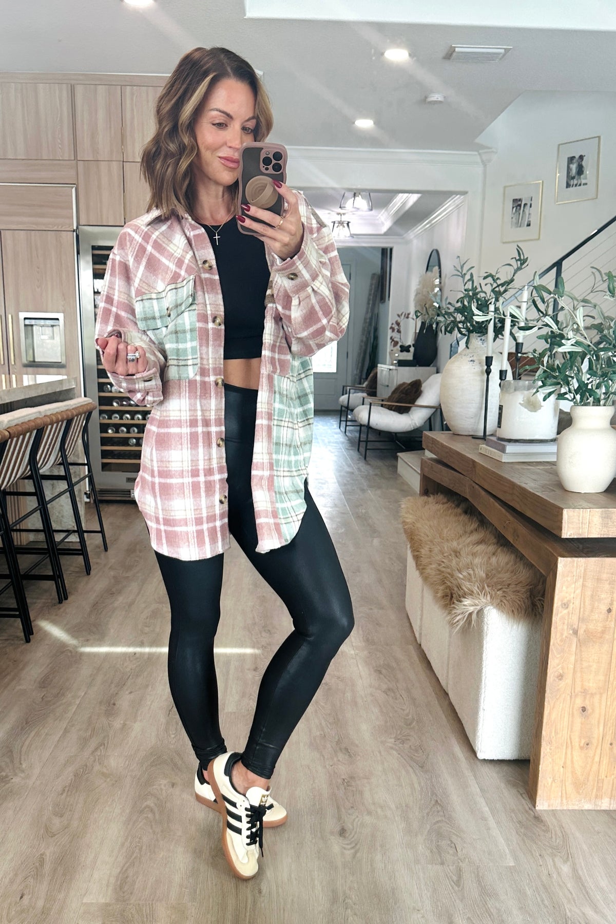 Get cozy with the Autumn Aesthetic Long Sleeve Plaid Knit Shacket, your new go-to for layering fun! This lightweight knit features a cheerful color-blocked body and a handy patch pocket, making it both stylish and practical. With a true-to-size fit, it’s perfect for those crisp days when you want to stay warm without overheating. Add a playful splash of plaid to your wardrobe and embrace the season with effortless charm! The model is in the small.