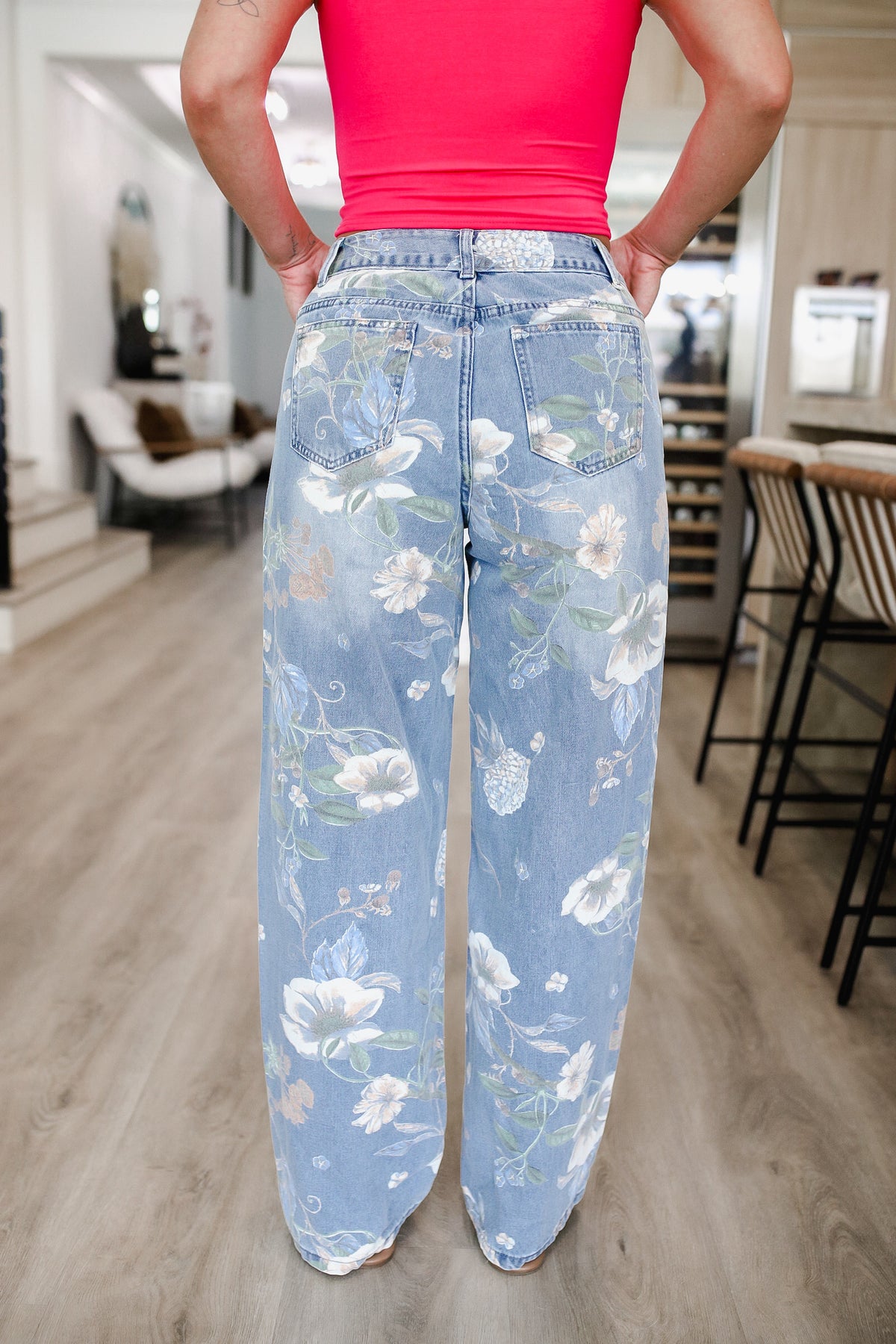 Meet your new favorite statement denim — our Floral Printed Wide Leg Jeans! Designed to turn heads, these jeans feature a vintage-inspired floral print that adds a playful, feminine touch to your everyday look. The high-rise waist flatters your shape while the wide leg offers a breezy, elongating silhouette that moves with you.