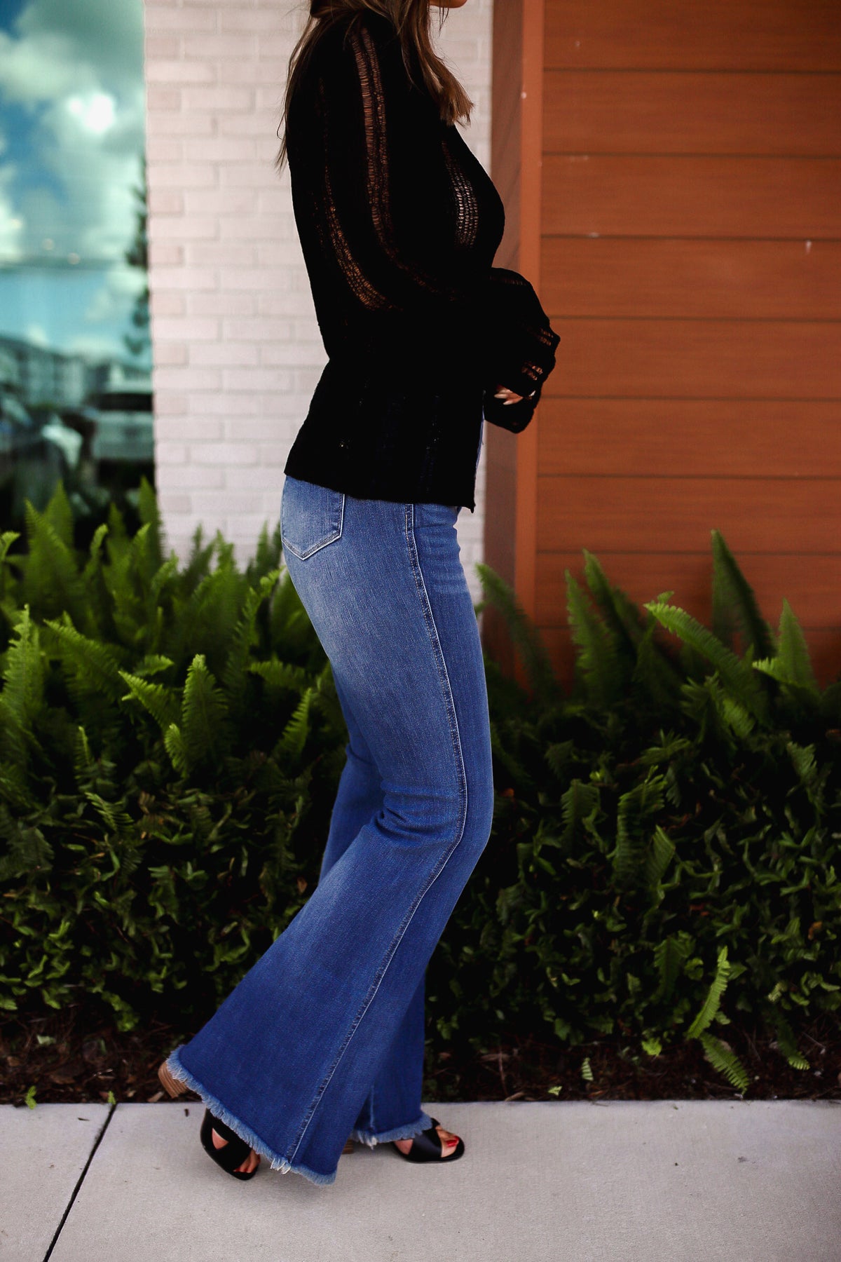 Miley High Waist Control Top Frayed Hem Flare Jeans