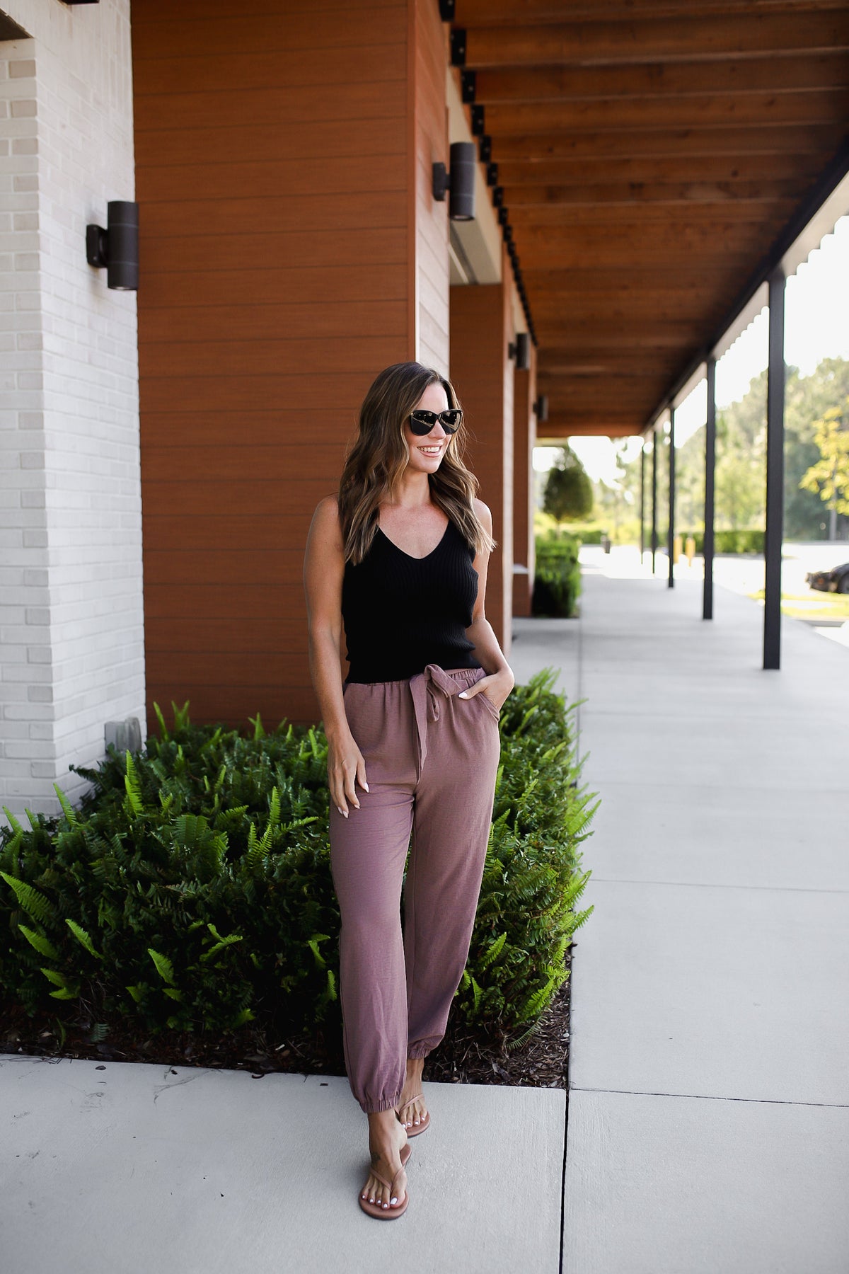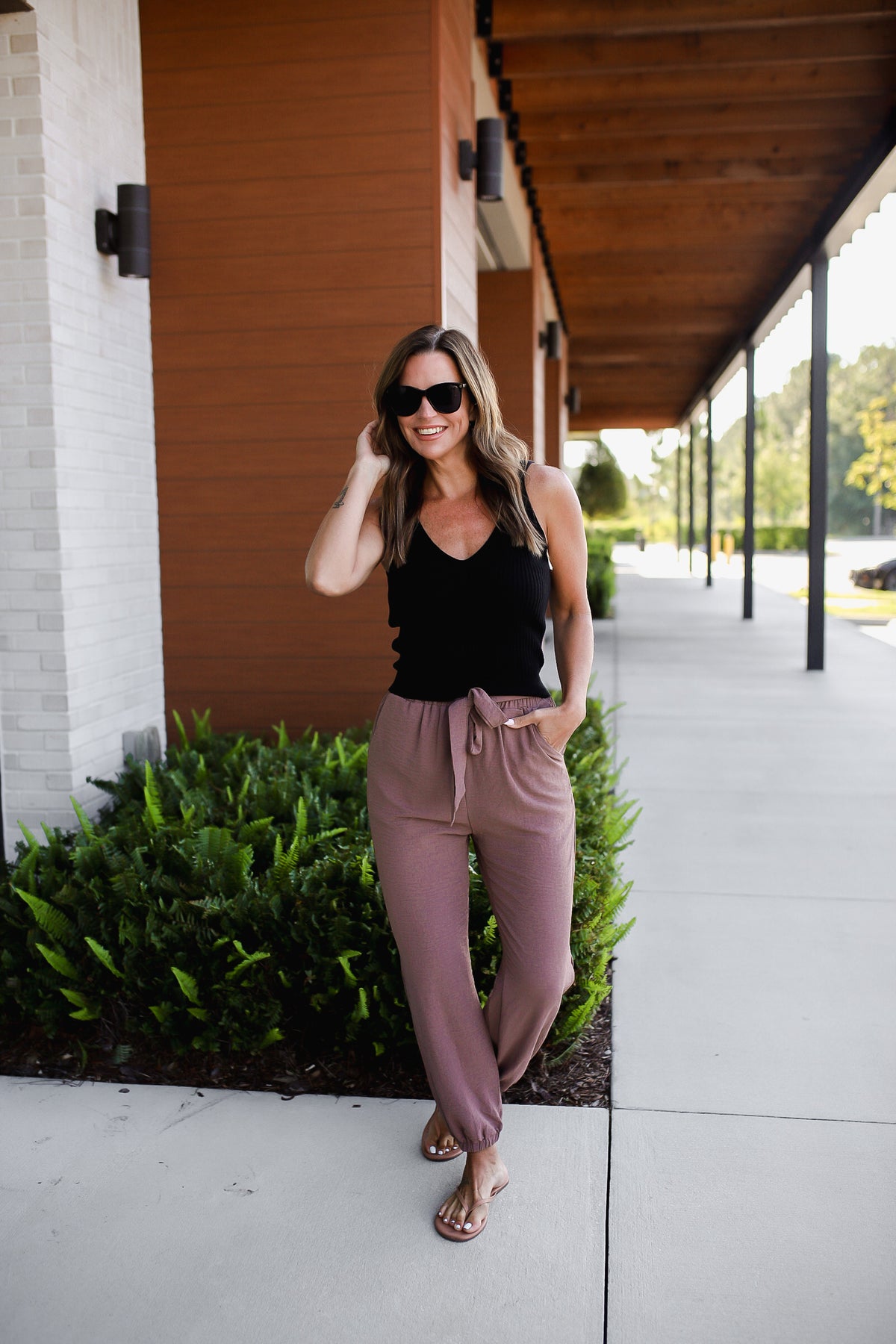 Keep your style on point and your hands free with our Tied High Waist Pants with Pockets. These pants not only elevate your look with a high waist and chic tie, but also offer practicality with spacious pockets. Say goodbye to bulky bags and hello to effortless fashion. The model is in the medium.