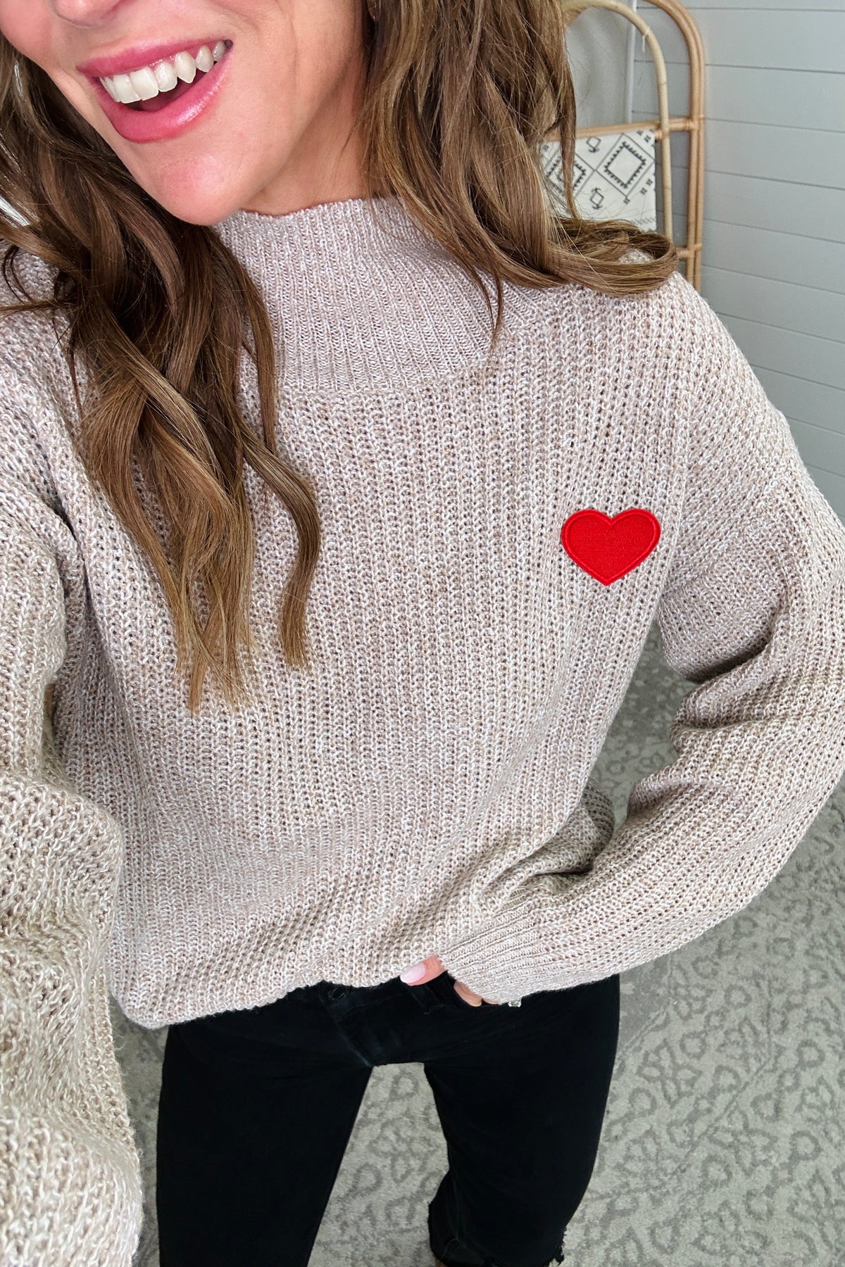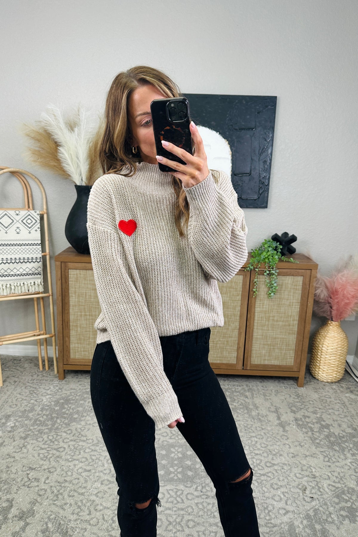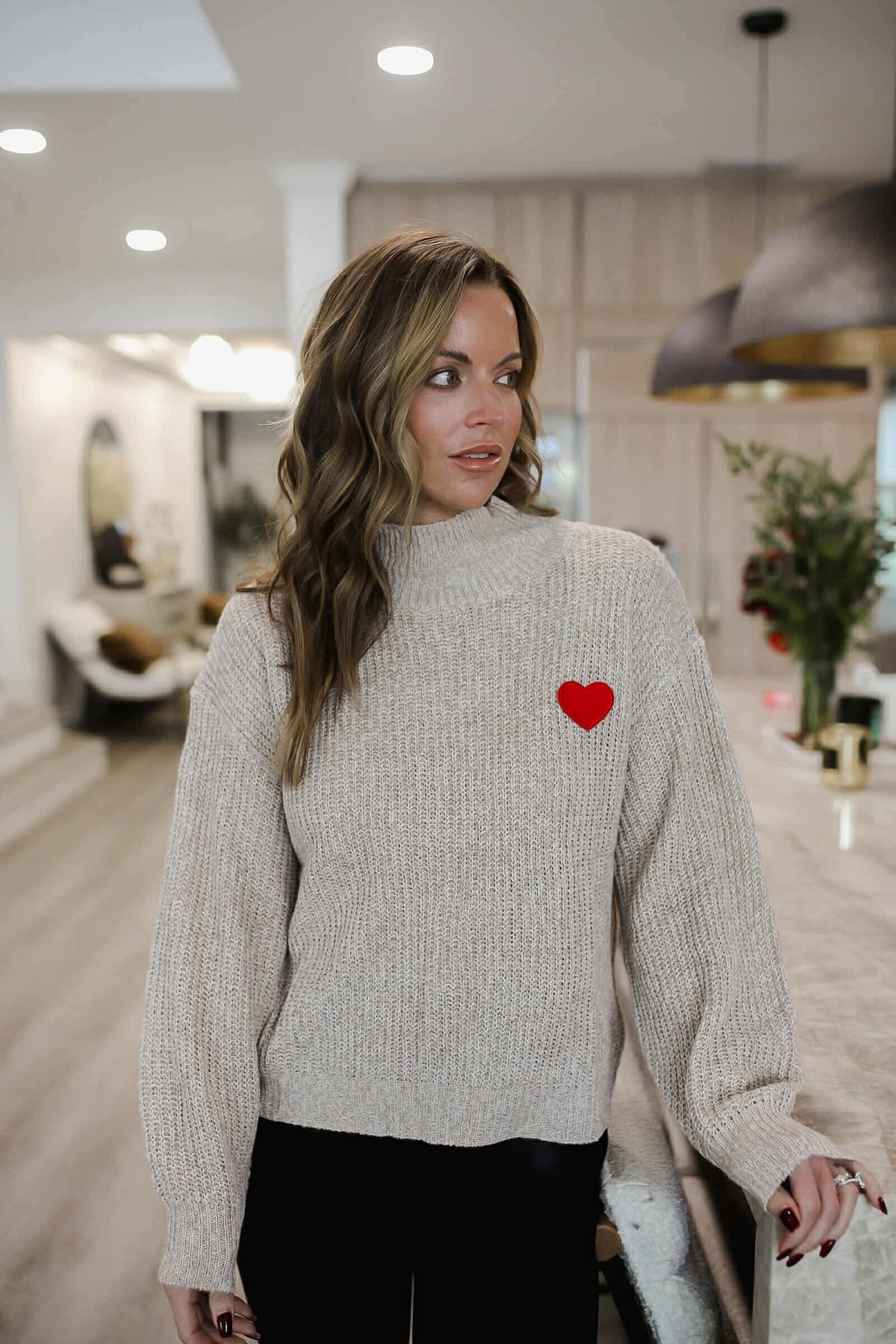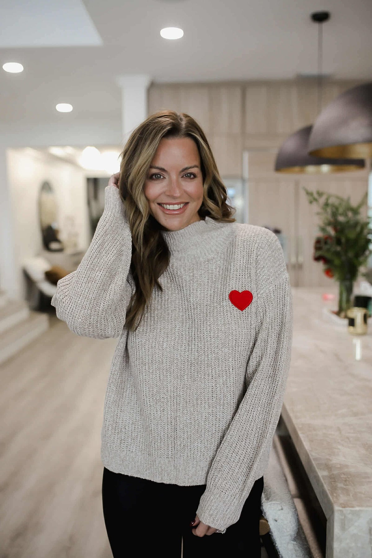Get cozy with this Heart Turtleneck Dropped Shoulder Long Sleeve Sweater. Its unique design adds a playful touch to your wardrobe, while the dropped shoulder and long sleeves give you a relaxed and comfortable fit. Perfect for keeping warm and stylish at the same time! Paired with Eileen Straight jeans.