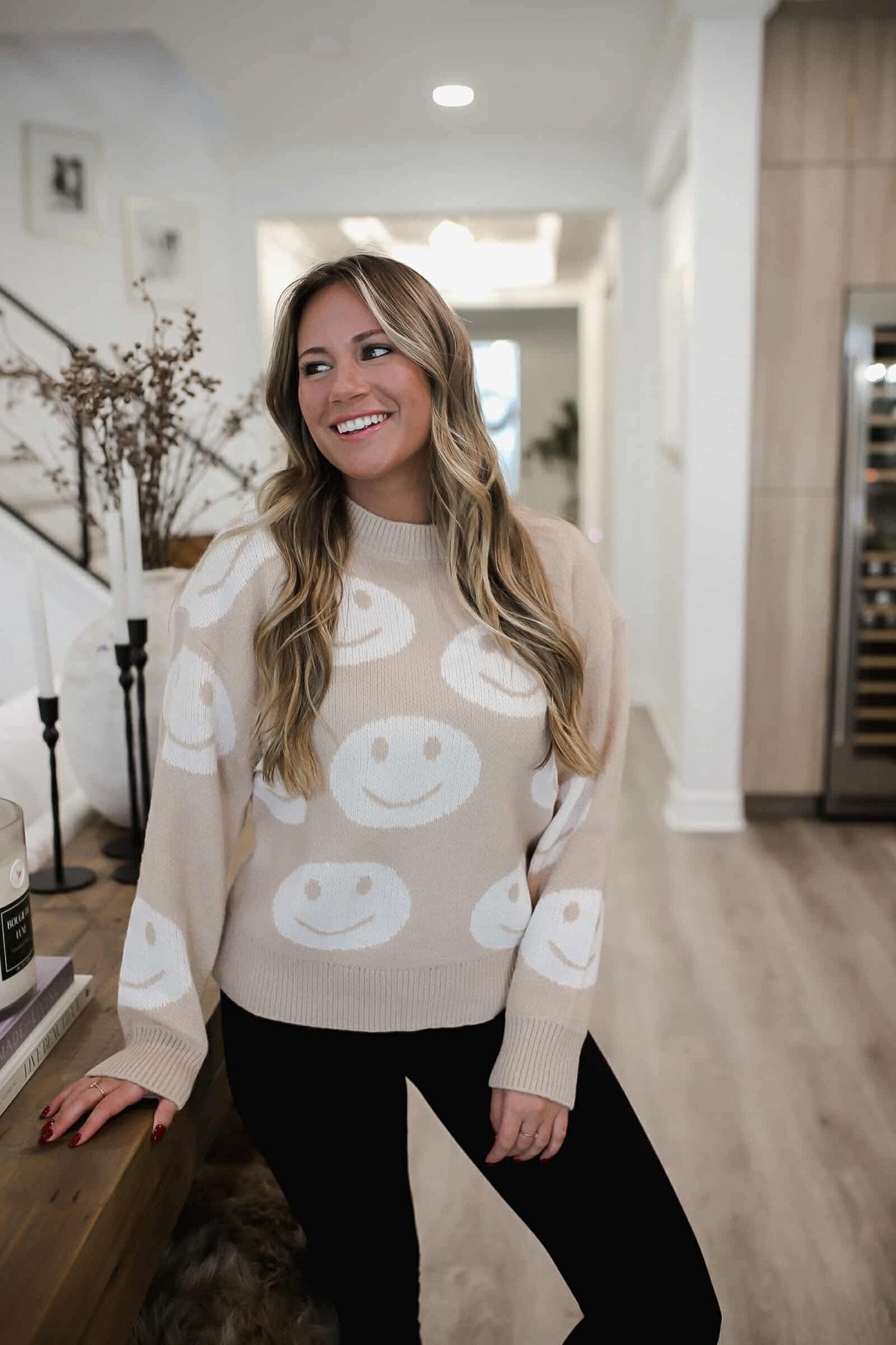 {"id":41258068475998,"title":"Tan \/ S","option1":"Tan","option2":"S","option3":null,"sku":"100100857861129","requires_shipping":true,"taxable":true,"featured_image":null,"available":true,"name":"Smile Pattern Round Neck Long Sleeve Sweater - Tan \/ S","public_title":"Tan \/ S","options":["Tan","S"],"price":4474,"weight":489,"compare_at_price":null,"inventory_management":"shopify","barcode":"100100857861129","requires_selling_plan":false,"selling_plan_allocations":[]}