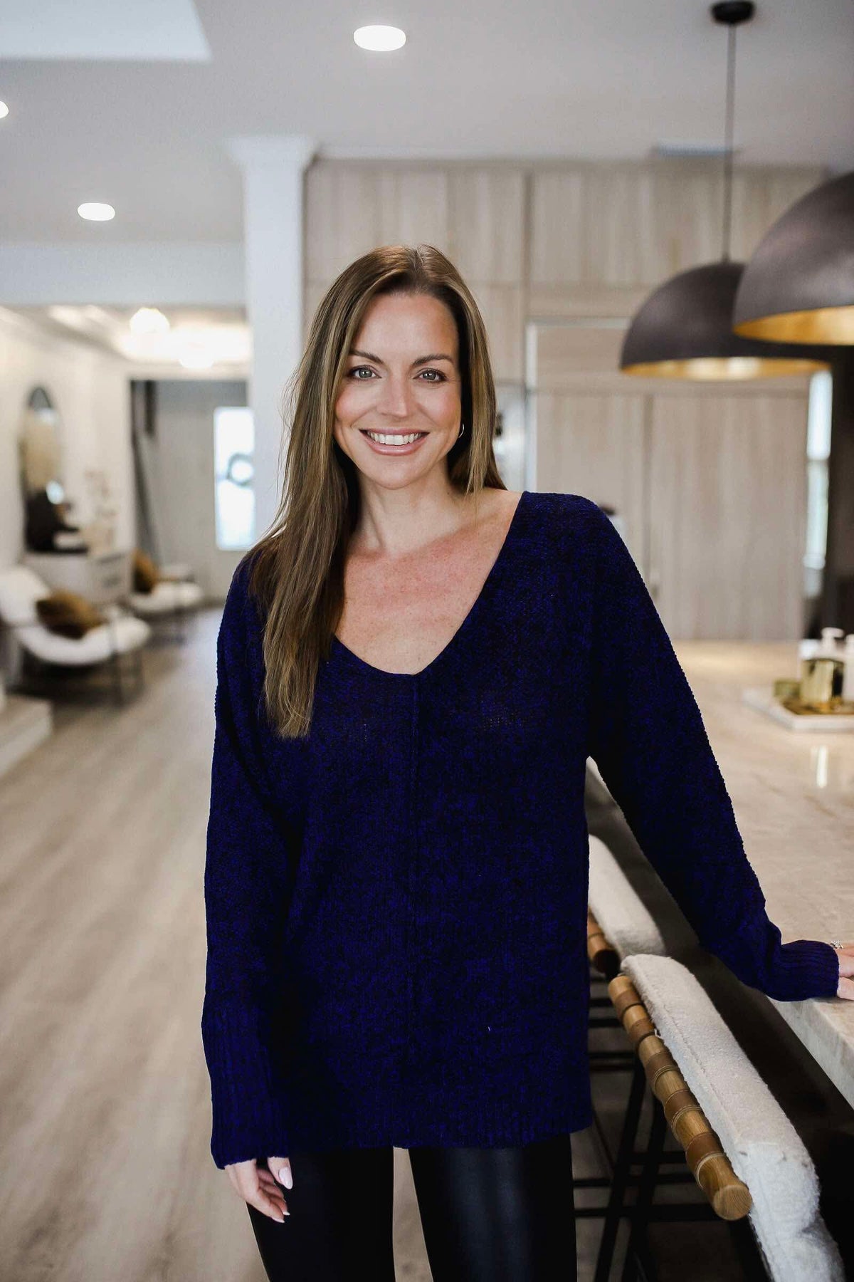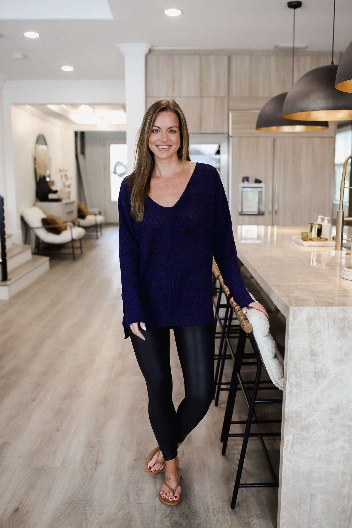 The High-Low Center Seam V-Neck Sweater is a versatile and stylish wardrobe essential for any season. This sweater features a unique high-low hemline with a center seam detail, adding a modern twist to a classic V-neck design. The V-neckline is flattering and elongating, making it a great choice for layering or wearing on its own. The high-low silhouette offers a trendy and effortless look that can be dressed up or down for various occasions. Made from a soft and comfortable fabric, this sweater is perfect for staying cozy and chic in any setting. Elevate your casual style with the High-Low Center Seam V-Neck Sweater.
