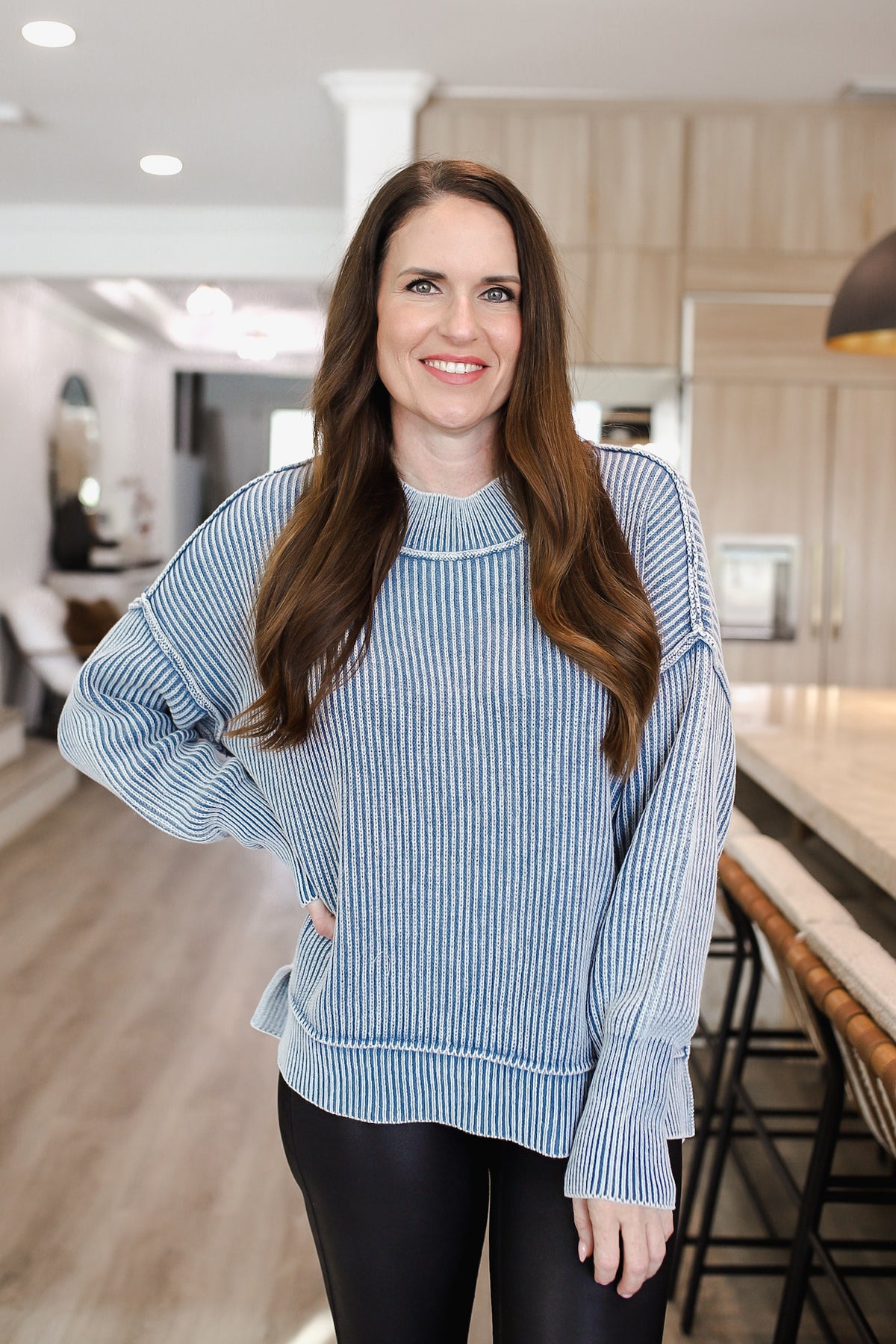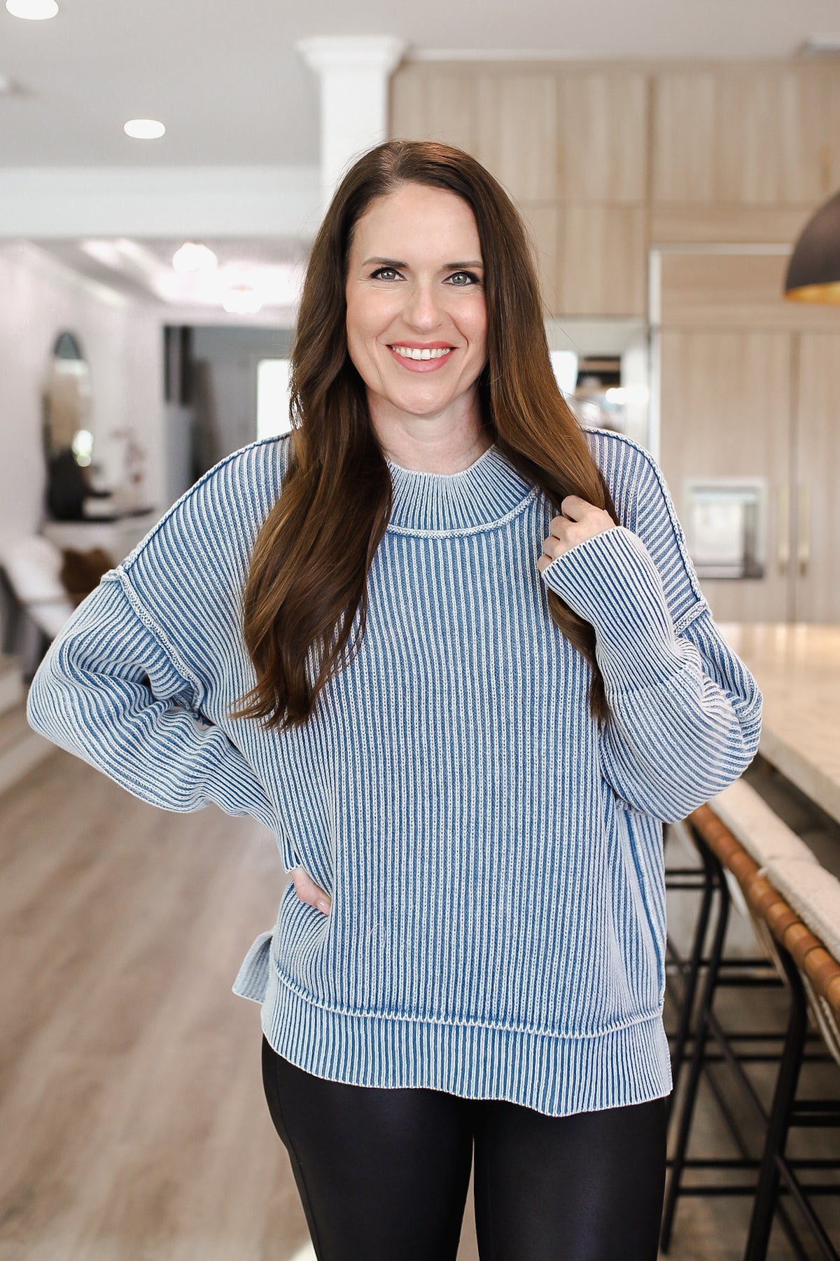 This oversized ribbed knit pullover features a relaxed fit design perfect for casual comfort and effortless style. Crafted from soft knit material in an elegant dusty blue shade, this sweater top showcases a classic ribbed texture throughout. The high-low hemline adds a modern touch while the crew neckline and long sleeves provide comfortable coverage. The loose silhouette makes it ideal for layering and creates a fashion oversized look. Perfect for everyday wear, this pullover combines comfort with contemporary fashion appeal.